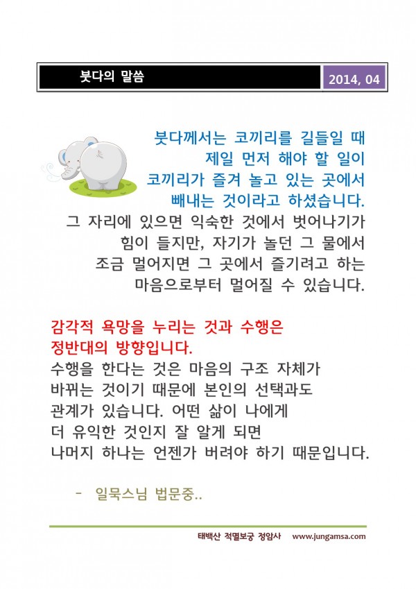 _()_ 붓다의 말씀 2014년 04월 - 익숙한 것에서 벗어나기 페이지 정보 작성자 정암사 작성일14-03-30 21:05 조회11,428회 댓글0건 본문 .. 댓글목록 등록된 댓글이 없습니다. 이전글 다음글 목록