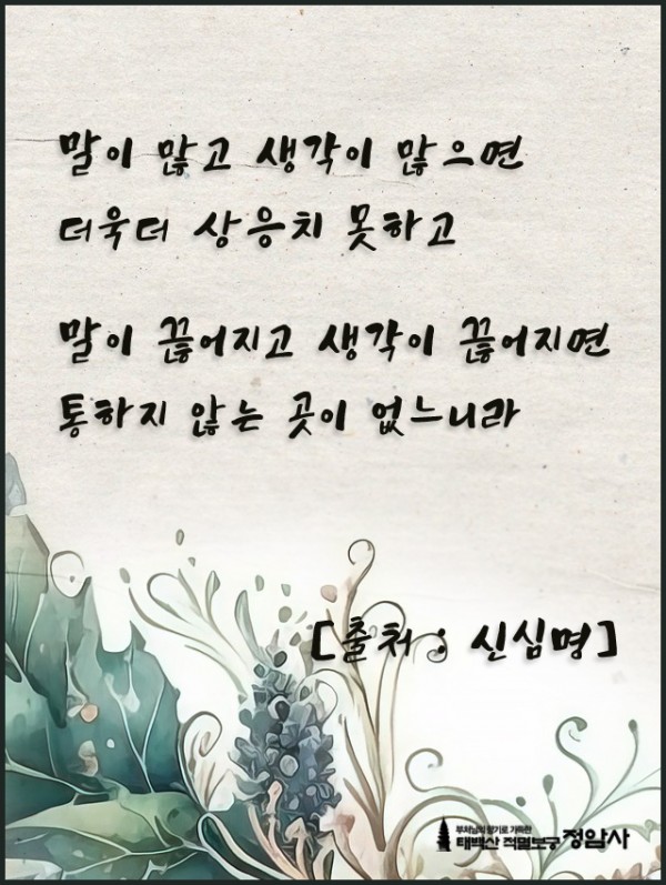 _()_ 붓다의 말씀 2023년 2월 - 말이 많고 생각이 많으면 페이지 정보 작성자 정암사 작성일23-01-26 13:45 조회7,548회 댓글0건 본문 . 댓글목록 등록된 댓글이 없습니다. 이전글 다음글 목록