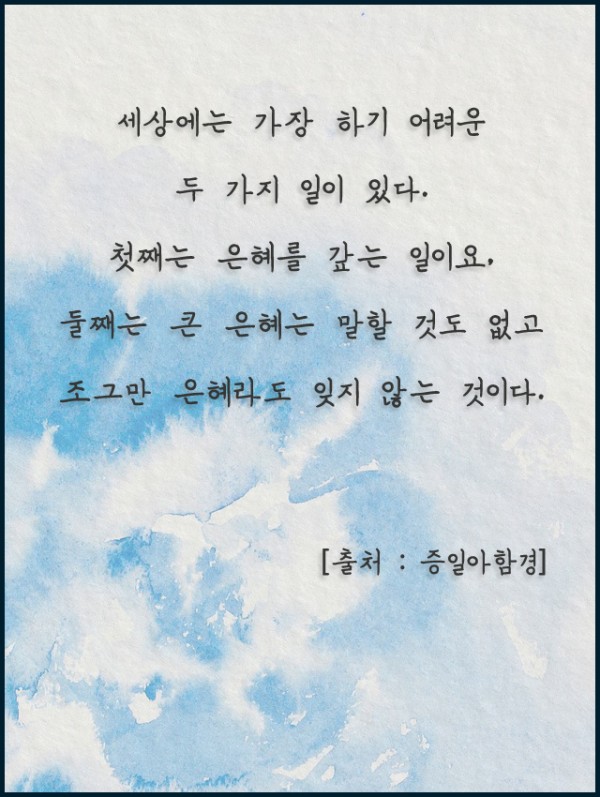 _()_ 붓다의 말씀 2021년 8월 - 세상에는 가장 하기 어려운 두 가지 일이 있다 페이지 정보 작성자 정암사 작성일21-07-29 15:46 조회9,982회 댓글0건 본문 . 댓글목록 등록된 댓글이 없습니다. 이전글 다음글 목록