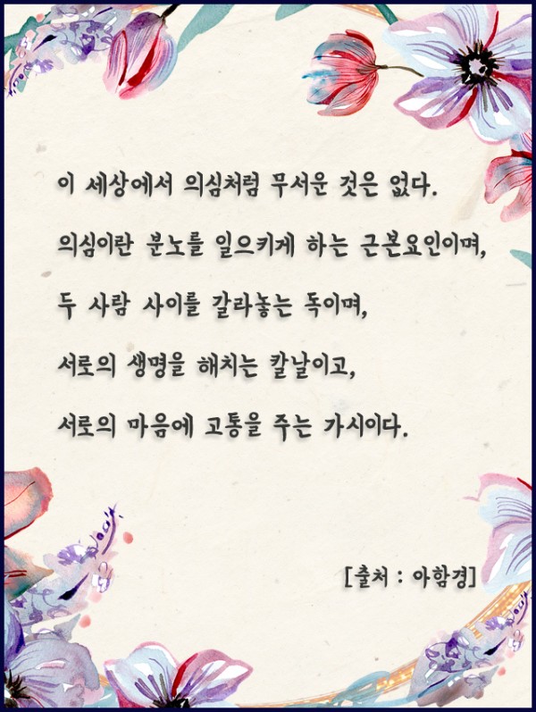 _()_ 붓다의 말씀 2021년 10월 - 이 세상에서 의심처럼 무서운 것은 없다 페이지 정보 작성자 정암사 작성일21-09-28 14:14 조회9,870회 댓글0건 본문 . 댓글목록 등록된 댓글이 없습니다. 이전글 다음글 목록