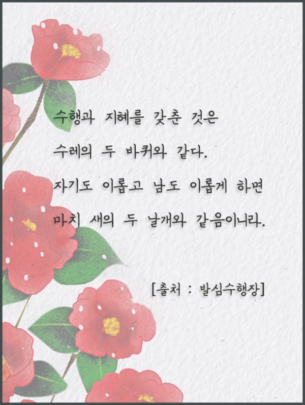 _()_ 붓다의 말씀 2022년 1월 - 수행과 지혜를 갖춘 것은 수레의 두 바퀴와 같다 페이지 정보 작성자 정암사 작성일22-01-01 22:48 조회9,280회 댓글0건 본문 . 댓글목록 등록된 댓글이 없습니다. 이전글 다음글 목록