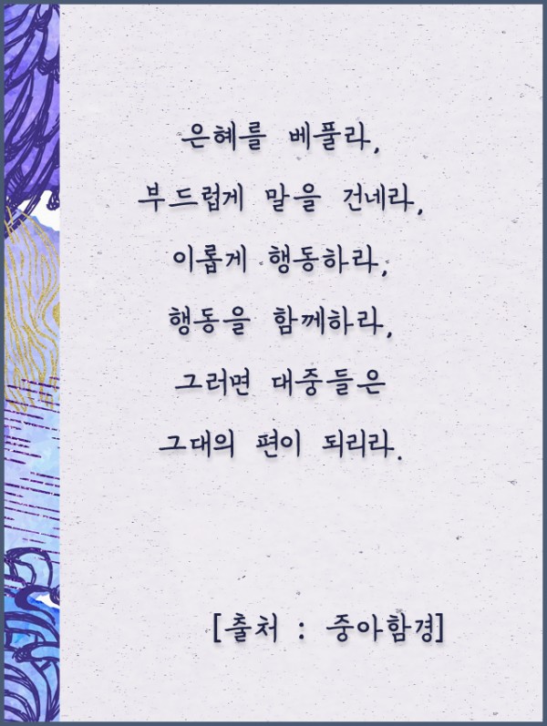 _()_ 붓다의 말씀 2020년 2월 - 은혜를 베풀라, 부드럽게 말을 건네라 페이지 정보 작성자 정암사 작성일20-01-29 13:45 조회10,559회 댓글0건 본문 댓글목록 등록된 댓글이 없습니다. 이전글 다음글 목록