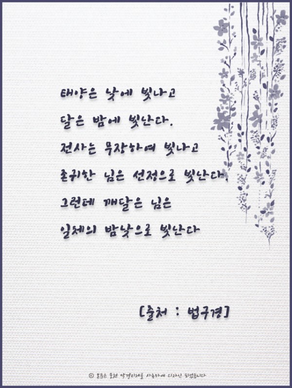 _()_ 붓다의 말씀 2019년 1월 - 태양은 낮에 빛나고 달은 밤에 빛난다 페이지 정보 작성자 정암사 작성일18-12-27 13:45 조회10,972회 댓글0건 본문 댓글목록 등록된 댓글이 없습니다. 이전글 다음글 목록