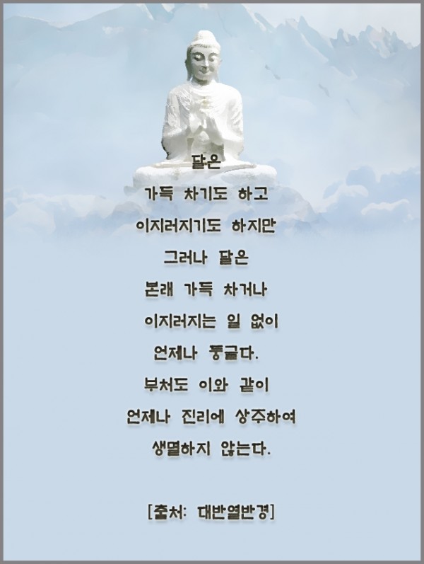 _()_ 붓다의 말씀 2018年 5月 - 달은 가득 차기도 하고 이지러지기도 하지만 페이지 정보 작성자 정암사 작성일18-04-27 10:07 조회10,924회 댓글0건 본문 댓글목록 등록된 댓글이 없습니다. 이전글 다음글 목록