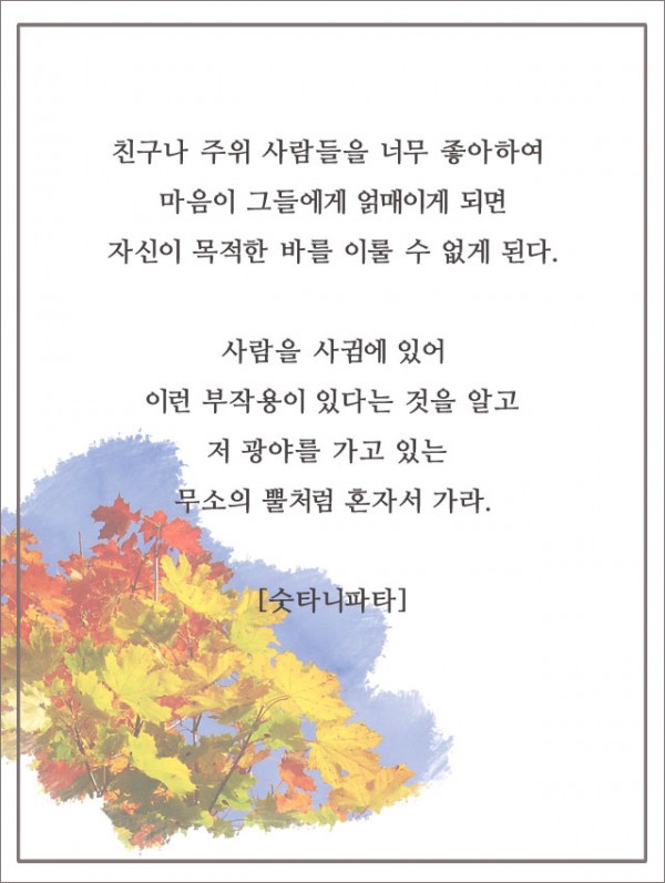 _()_ 붓다의 말씀 2016년 11월 - 무소의 뿔처럼 혼자서 가라 페이지 정보 작성자 정암사 작성일16-11-01 13:16 조회12,507회 댓글1건 본문 댓글목록 등록된 댓글이 없습니다. 이전글 다음글 목록
