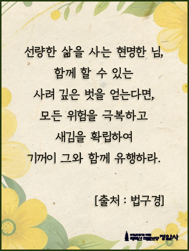 _()_ 붓다의 말씀 2026년 3월 - 선량한 삶을 사는 현명한 님 페이지 정보 작성자 정암사 작성일26-02-27 21:08 조회47회 댓글0건 본문 댓글목록 등록된 댓글이 없습니다. 다음글 목록