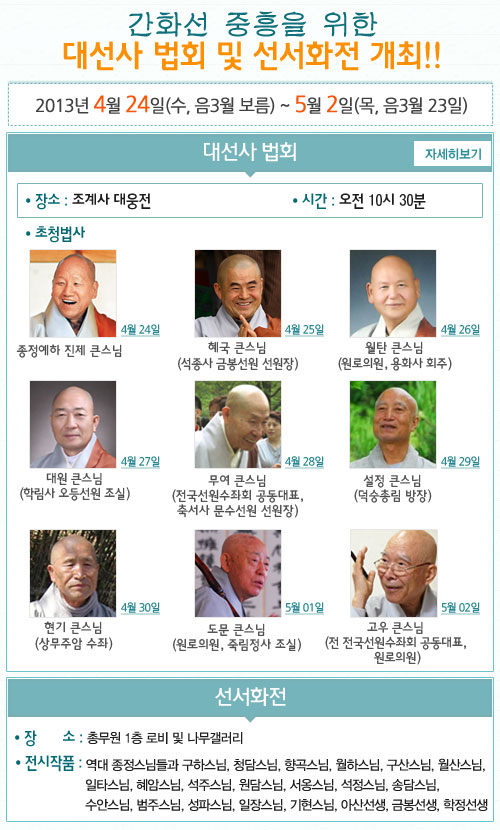 간화선 중흥을 위한 대선사 법회 페이지 정보 작성자 정암사 작성일13-03-22 21:06 조회10,786회 댓글0건 본문 자세한 내용은 선원수좌복지회 홈페이지를 참고하세요 http://seonsujoa.org/ 댓글목록 등록된 댓글이 없습니다. 이전글 다음글 목록