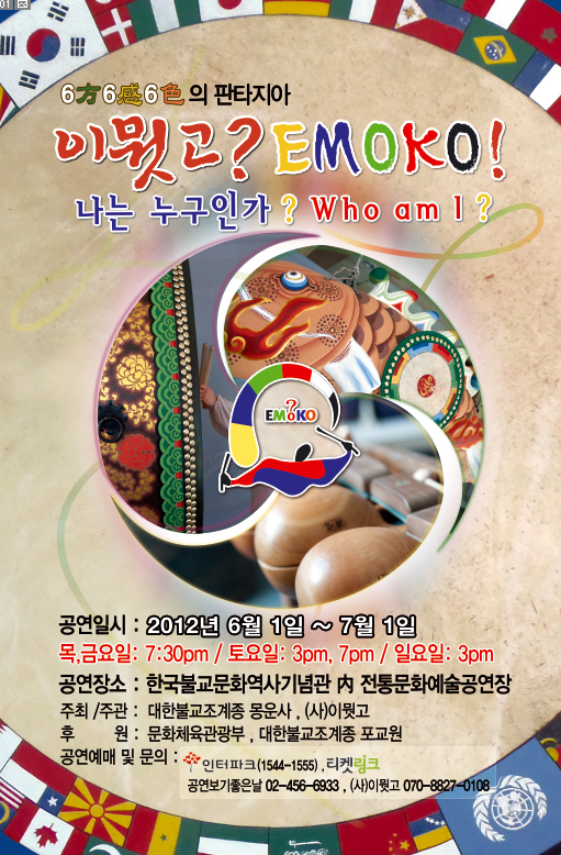 이뭣고∘EMOKO는 템플스테이를 소재로 한 순수 창작극으로 대한불교조계종 (조계사) 전통문화공연장에서 6월 1일 ~ 7월 1일 한 달간 목, 금, 토, 일요일에 공연을 합니다.