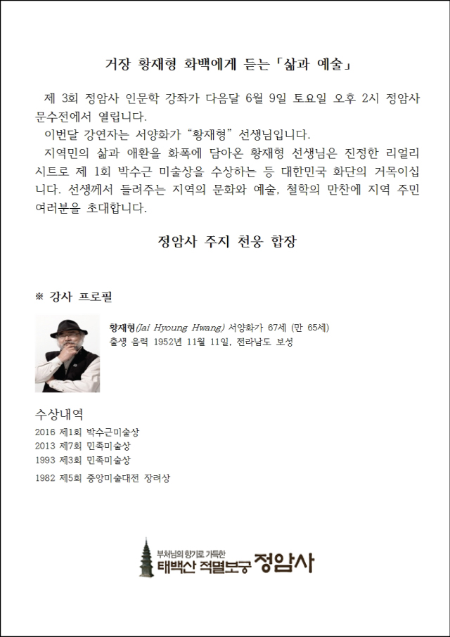 『제3회 정암사 인문학강좌』_6월 9일 14시 문수전 페이지 정보 작성자 정암사 작성일18-05-28 20:34 조회9,713회 댓글0건 본문 . 댓글목록 등록된 댓글이 없습니다. 이전글 다음글 목록
