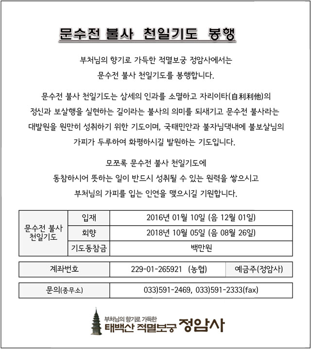 문수전 불사 천일기도 봉행