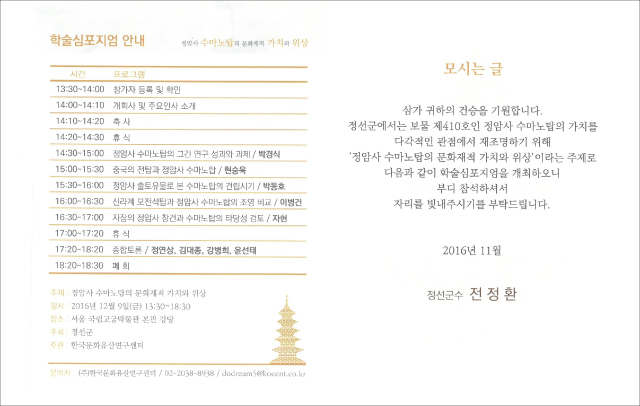 학술심포지움 안내_ 정암사 수마노탑의 문화적 가치와 위상