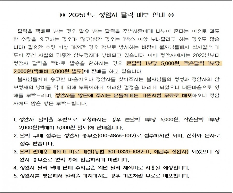 2025년도 정암사 달력 배부 안내 페이지 정보 작성자 정암사 작성일24-12-04 13:10 조회4,482회 댓글0건 본문 . 댓글목록 등록된 댓글이 없습니다. 이전글 다음글 목록