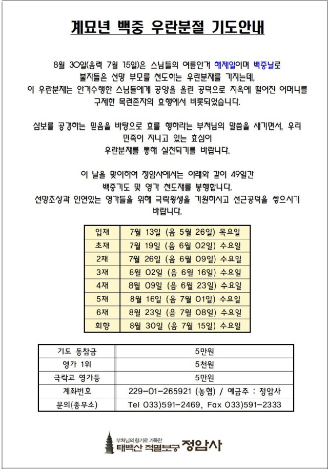 계묘년 백중 우란분절 기도 봉행 > 공지사항