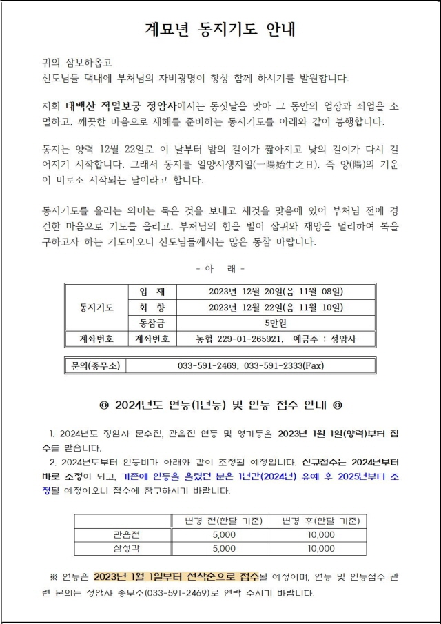 계묘년 동지기도 안내