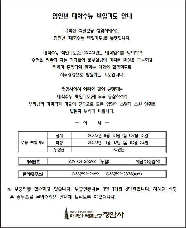 임인년 대학수능 백일기도 봉행 > 공지사항