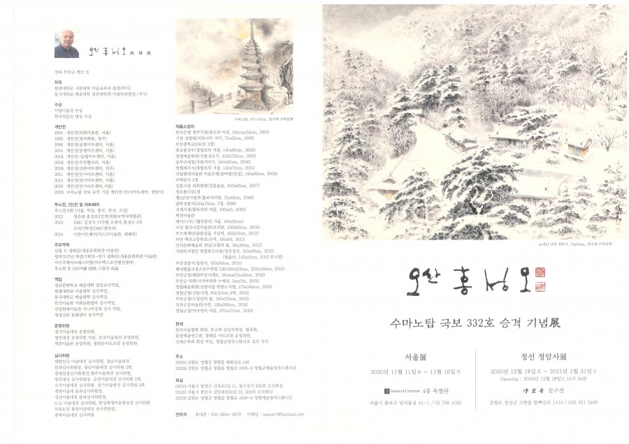 오산 홍승모 화백님의 수마노탑 국보332호 승격기념전을 코로나19로 19일날 예정되었던 전시회가 전격 취소되었음을 알려드립니다.