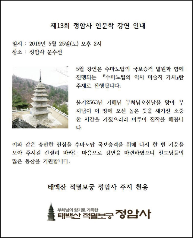 『제13회 정암사 인문학 강연』_5월 25일(토) 오후 2시 페이지 정보 작성자 정암사 작성일19-05-11 13:31 조회9,340회 댓글0건 본문 . 댓글목록 등록된 댓글이 없습니다. 이전글 다음글 목록