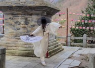 적멸보궁 수마노탑앞에서 '동래학춤의 명인'박소산선생,평화의 날개짓