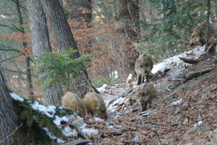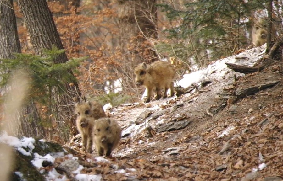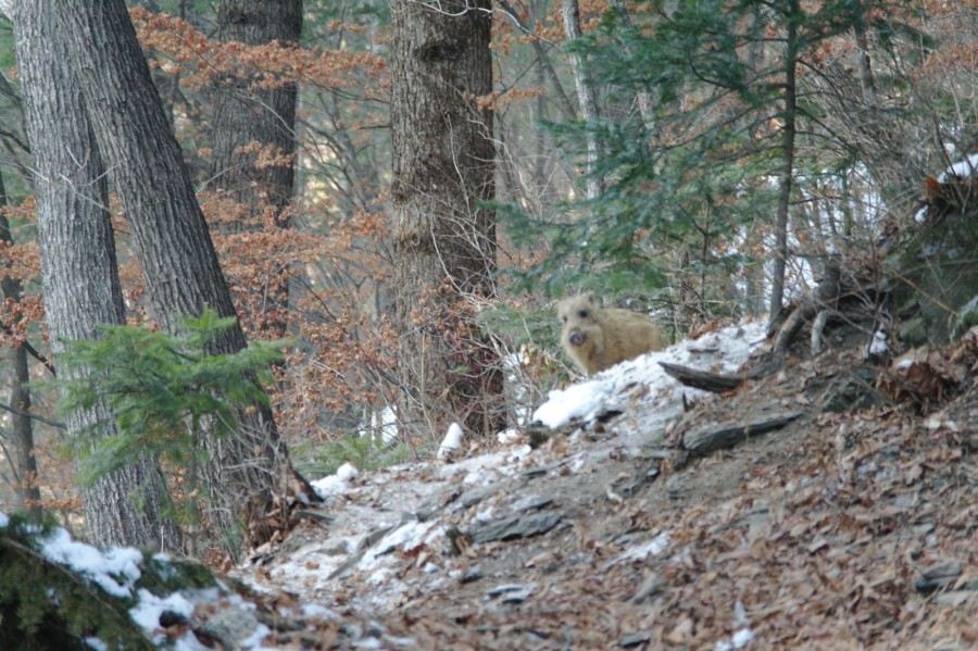 정암사 경내를 제집처럼 드나들던 1쌍의 멧돼지들이