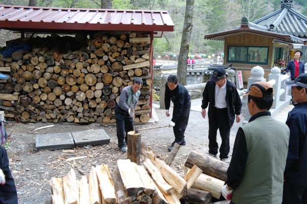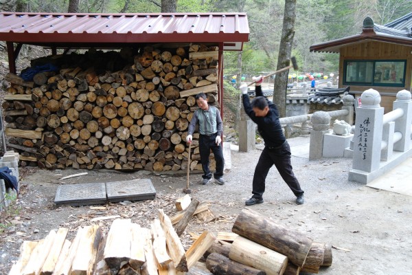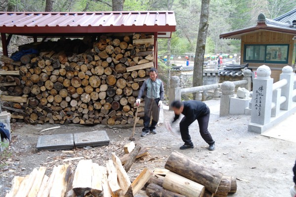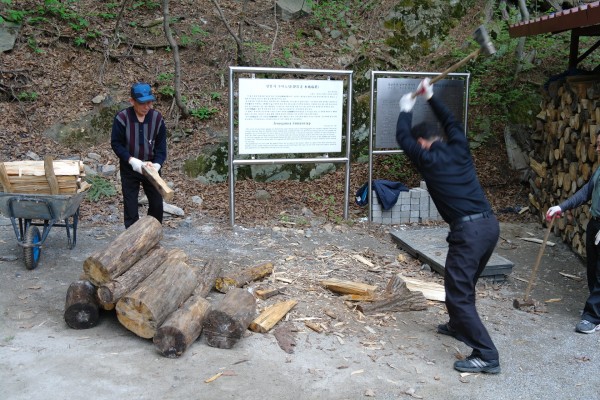 우지끈 한방에 쪼개지는 장작들